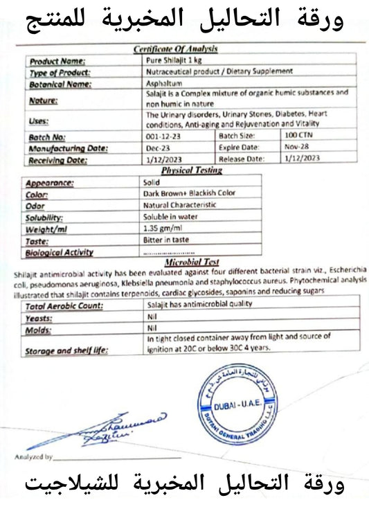 الشيلاجيت الأصلي الخام (ليس الصمغ المعالج)