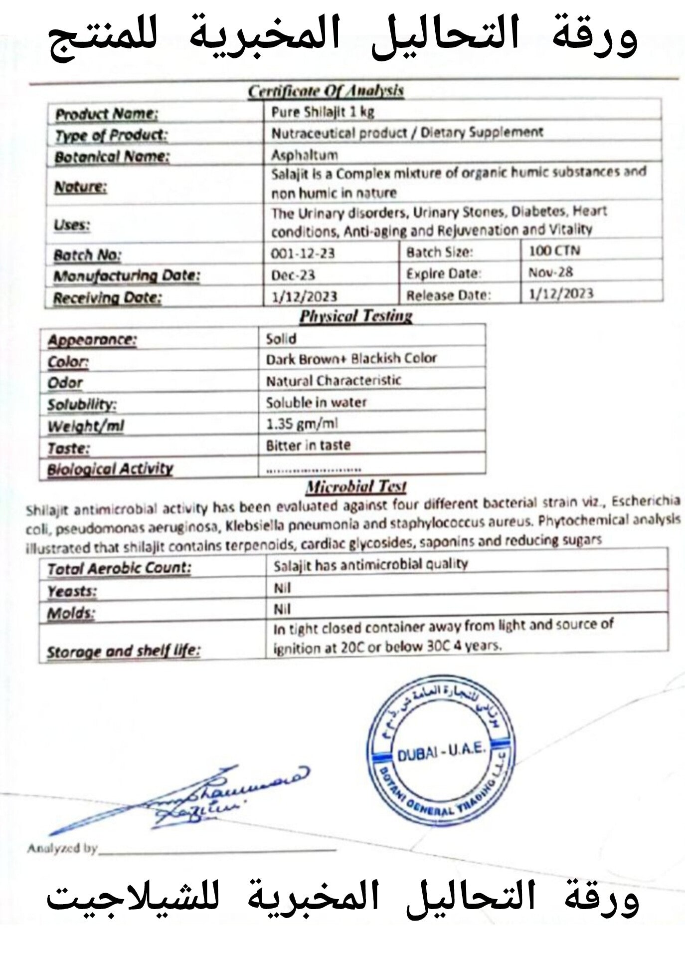 الشيلاجيت الأصلي الخام (ليس الصمغ المعالج)